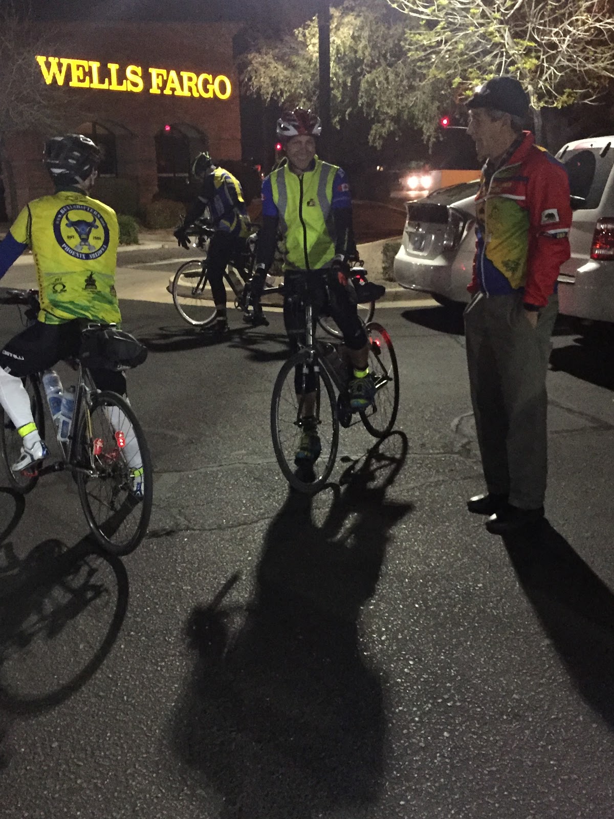 We used the break time to don the reflective gear, arm and leg warmers, and set out for the final run through Queen Creek to Sun Lakes. While a little warm at first, as we headed back into the rapidly cooling desert, and then the even cooler farms of Queen Creek, it was the right call.